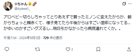 - 天然成分100%でも、植物アレルギーの子には合わない場合がある