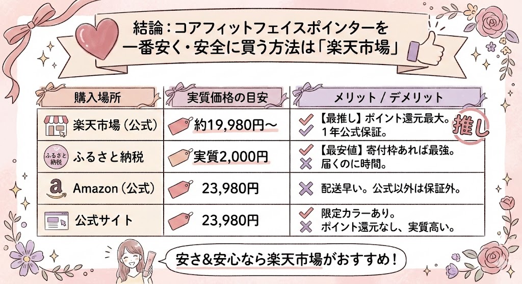 【まとめ】コアフィットフェイスポインターを1番安く買う方法は楽天市場で買うこと