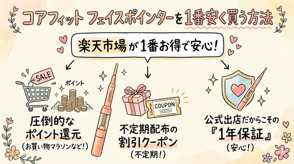 コアフィットフェイスポインターを1番安く買う方法は、楽天市場の公式ショップ一択です。