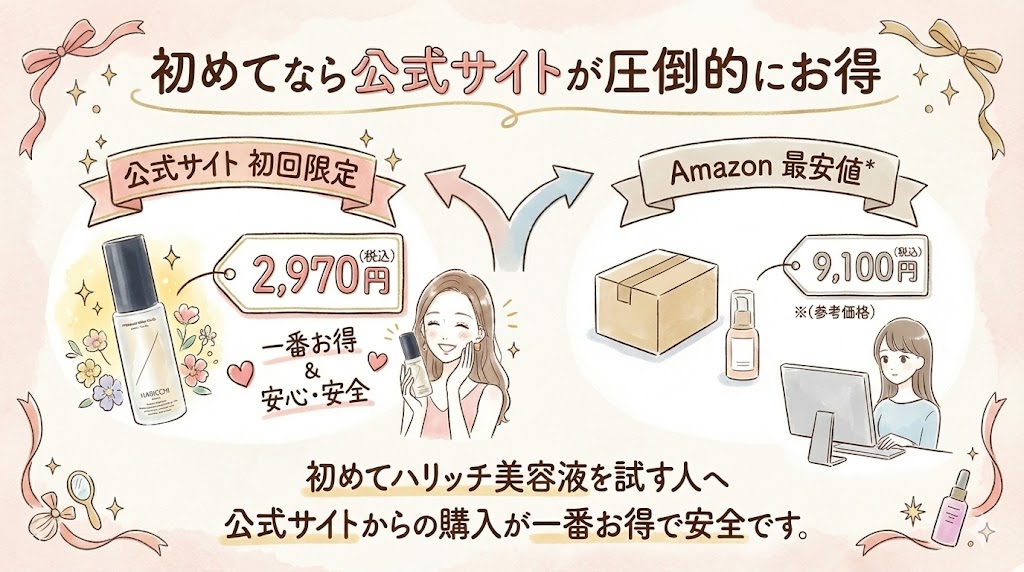 ハリッチ美容液を買うなら、コスパも安全性も高い公式サイトが断然おすすめです。