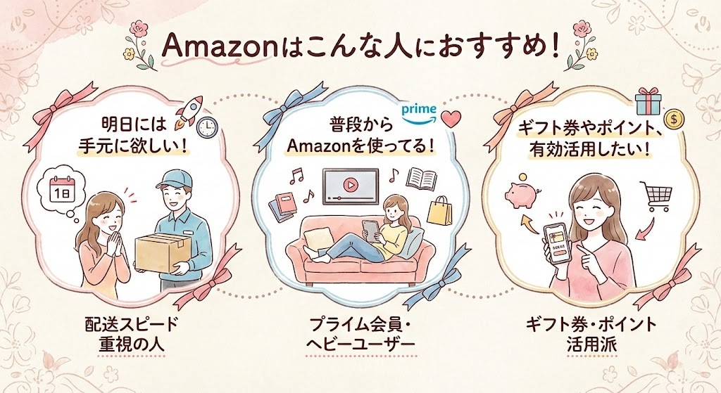 「明日までに欲しい」「ギフト券を使いたい」という人は、プライムデーやブラックフライデーなどの大型セールを狙いましょう。