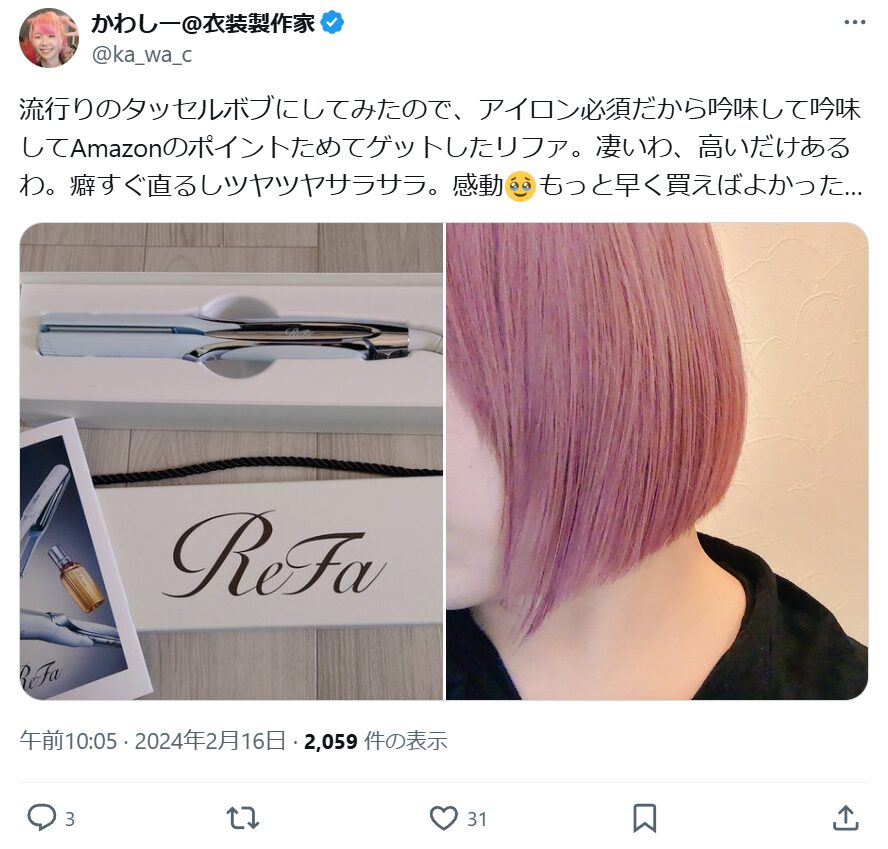 しかし、総合的には「髪へのダメージを抑えながら、ワンランク上のスタイリングができる」という声が多く、今まで使っていたヘアアイロンとの違いに感動しているユーザーが大多数です。