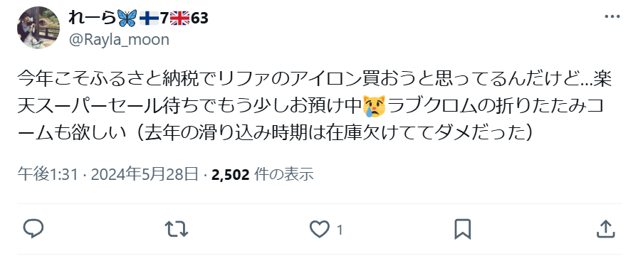 楽天市場の次にお得な方法として、「ふるさと納税の返礼品で手に入れる」という選択肢もあります。