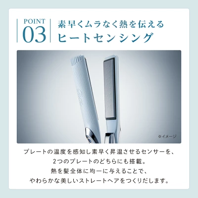 温感センサーが両面になったことで、癖が強い髪質でもムラなくストレートヘアを実現できます。