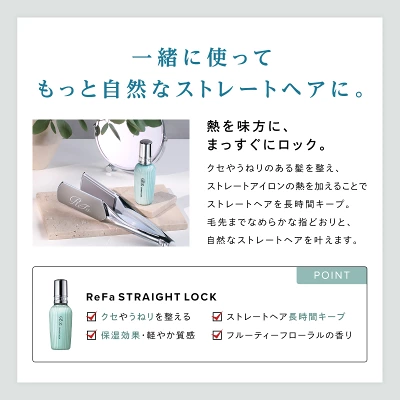 髪の毛のダメージをより少なくしたい方は「リファロックオイル」をアイロン前につけると、熱ダメージをさらに軽減できるのでおすすめです。